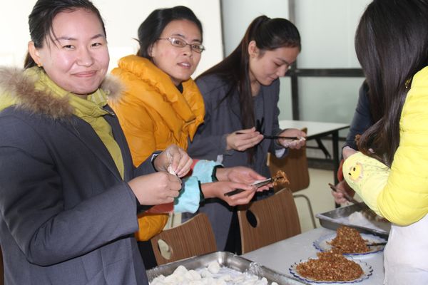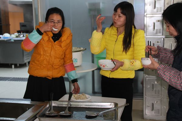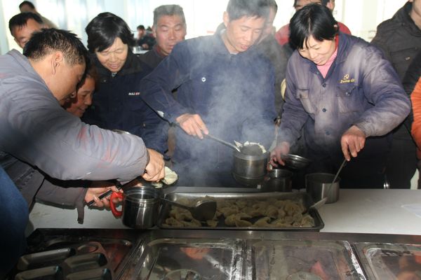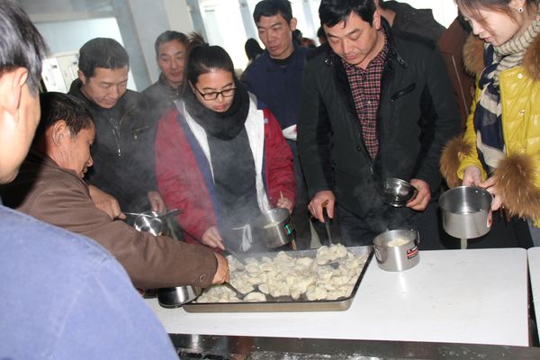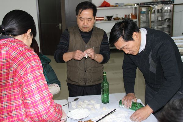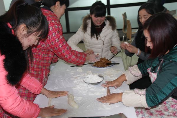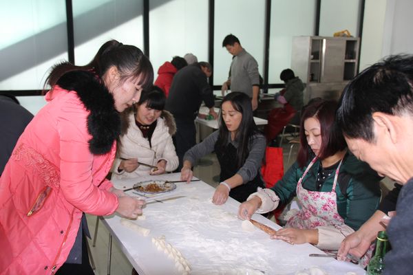 我公司領(lǐng)導(dǎo)組織各部門人員以及一線工人,弘揚(yáng)毛主席“自己動手,豐衣足食”的作風(fēng),東起全體員工自己動手包餃子。在公司領(lǐng)導(dǎo)的組織下,大家開始有秩序的進(jìn)行準(zhǔn)備工作,系上圍裙,有的和面、有的搟皮、有的做餃子餡。大家分開兩撥,這邊和面,那邊飽餃子,氣氛很活躍。同事們以迅雷不及掩耳之勢完成了準(zhǔn)備工作,準(zhǔn)備工作完成后,進(jìn)入包餃子階段,雖然很多同事不怎么會包餃子,但是在別人的幫助下很快進(jìn)入狀態(tài)??粗粋€個新鮮出爐的餃子,同事們的表情非常精彩,相互調(diào)侃的的話也漸漸多起來,包餃子工程進(jìn)入***階段,氣氛一時異常火熱,看著同事們一個個熱情洋溢的表情,一盤盤“奇形怪狀”的餃子真是羨煞旁人!